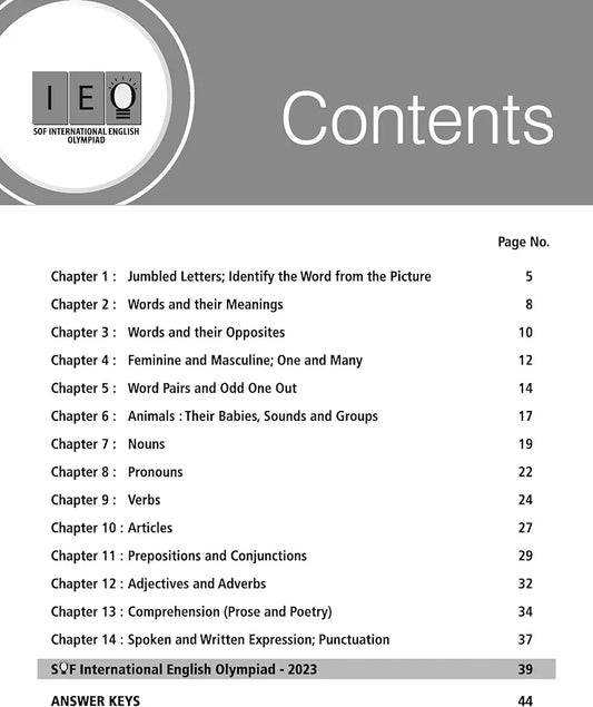 MTG International English Olympiad (IEO) Workbook for Class 5 - MCQs, Previous Years Solved Paper and Achievers Section - SOF Olympiad Preparation Books For 2024-2025 ExamRegular price Rs. 90.00Regular priceUnit price / perRs. 100.00Sale price Rs. 90.00Sale