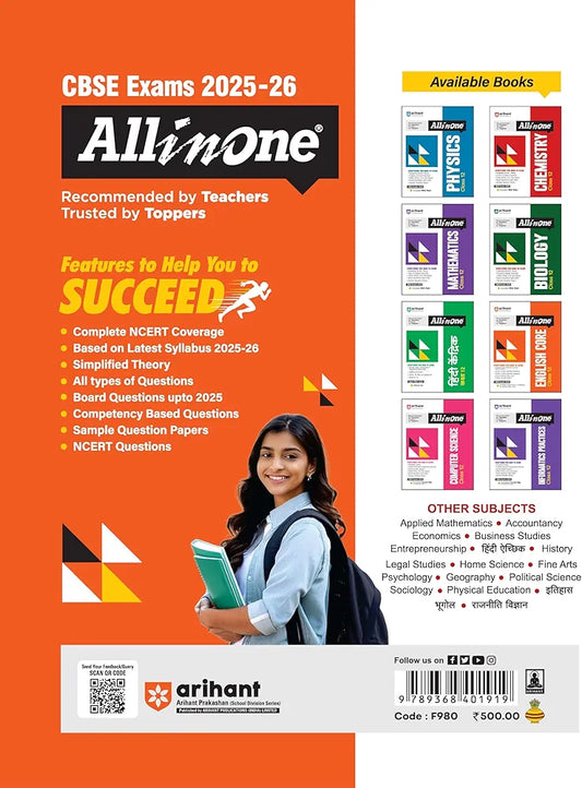 Arihant All in One Entrepreneurship Class 11 for CBSE Exams 2025-26 | Revised Edition as per latest syllabus | Simplified Theory, All Types of Exam Pattern Questions, CBQs, MCQs, A-R, Case Based, Sample Question Papers, Project Work