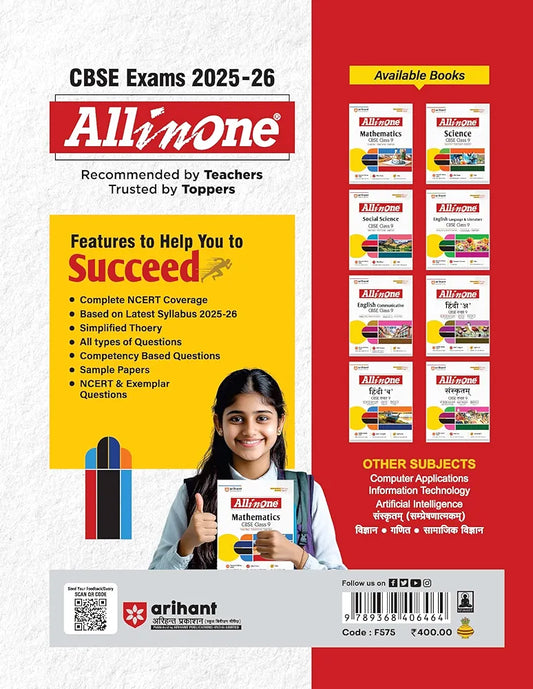 Arihant All in One Ganit (Mathematics) Class 9 for CBSE Exams 2025-26 | Simplified Theory, All Types of Exam Pattern Questions, CBQs, Sample Question Papers, Mind Maps, Topic & Chapter Exercises, Activities, Board Papers