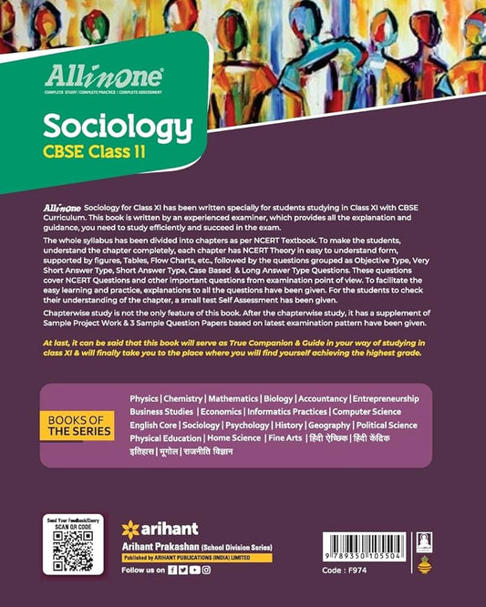 Arihant All in One Sociology Class 11 for CBSE Exams 2025-26 | Revised Edition as per latest syllabus | Simplified Theory, All Types of Exam Pattern Questions, CBQs, MCQs, A-R, Case Based, Sample Question Papers, & Project Work