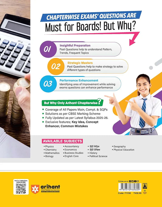 Arihant CBSE Chapterwise Question Bank 2025–2016 for Class 12 Accountancy | Latest Syllabus | Includes Solved Papers, Sample Papers, and CBSE Marking Scheme