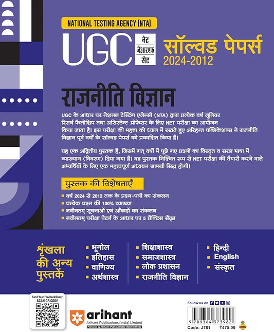 Arihant NTA UGC NET/JRF/SET Rajneeti Vigyan Solved Papers (2024-2012) | Detailed Explanations of All Questions with 5 Practice Sets