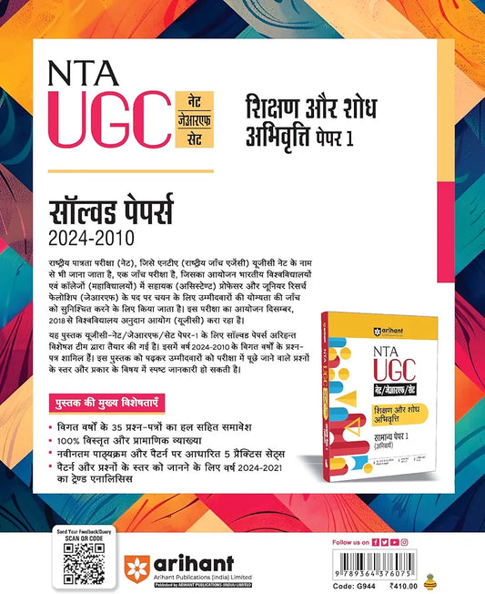 Arihant NTA UGC NET/JRF/SET Shikshan Aur Shodh Abhivrati Paper | Solved Papers (2024-2010) | Free 5 Practice Sets