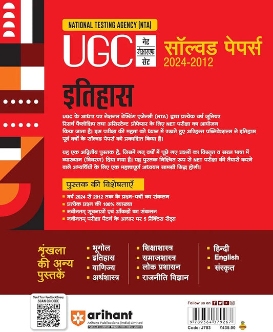 Arihant NTA UGC NET/JRF/SET Itihas Solved Papers (2024-2012) | Detailed Explanations of All Questions with 5 Practice Sets