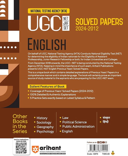 Arihant NTA UGC NET/JRF/SET English Solved Papers (2024-2012) | Detailed Explanations of All Questions with 5 Practice Sets