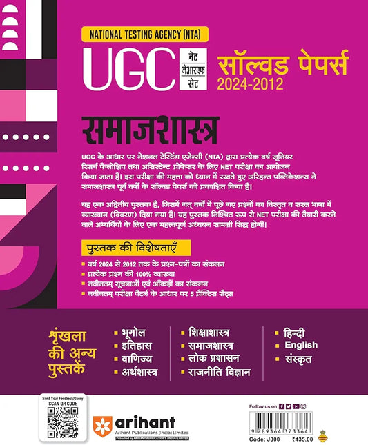 Arihant NTA UGC NET/JRF/SET Samaj Shastra Solved Papers (2024-2012) | Detailed Explanations of All Questions with 5 Practice Sets