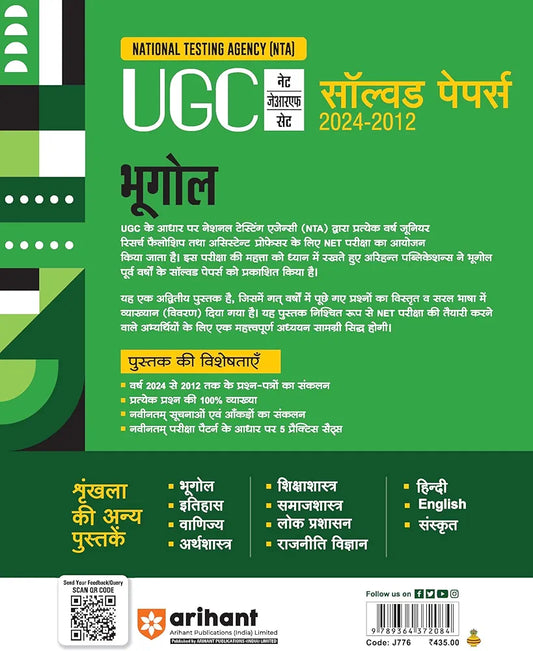 Arihant NTA UGC NET/JRF/SET Bhugol Solved Papers (2024-2012) | Detailed Explanations of All Questions with 5 Practice Sets