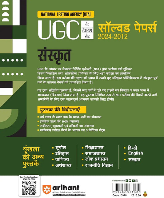 Arihant NTA UGC NET/JRF/SET Sanskrit Solved Papers (2024-2012) I Detailed Explanations of All Questions with 5 Practice Sets