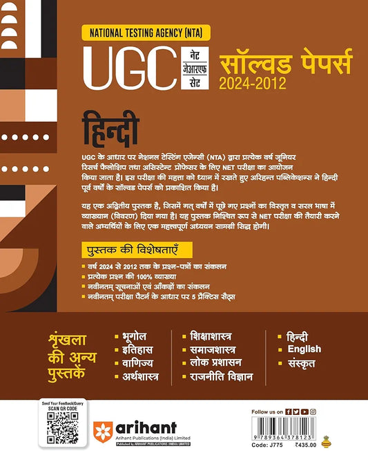 Arihant NTA UGC NET/JRF/SET Hindi Solved Papers (2024-2012) | Detailed Explanations of All Questions with 5 Practice Sets