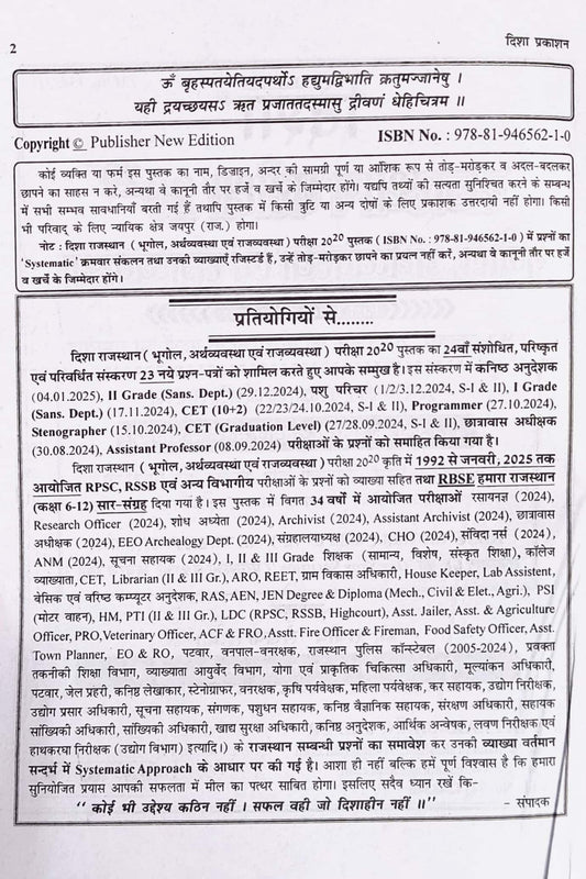 Disha Rajasthan Pariksha 20-20 Bhugol, Arthvyavstha New edition