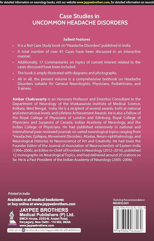 Case Studies in Uncommon Headache Disorders by Ambar Chakravarty 2nd Edition (hardcover)
