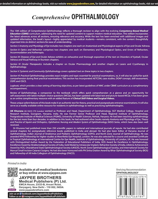 Comprehensive Ophthalmology Including Practical Manual with Ophthalmology Logbook by AK Khurana 10th Edition