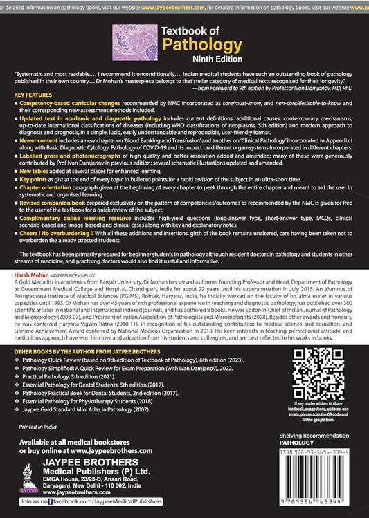 TEXTBOOK OF PATHOLOGY (FREE PATHOLOGY QUICK REVIEW) by Harsh Mohan 9th edition hardcover