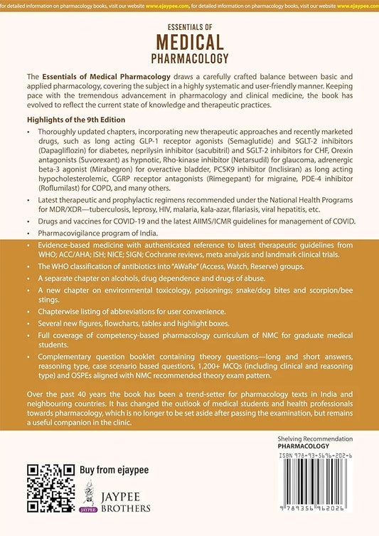 KD Tripathi ESSENTIALS OF MEDICAL PHARMACOLOGY COMPLIMENTARY BOOK INCLUDED 9/E, Revised Reprint 2026 Edition KD Tripathi