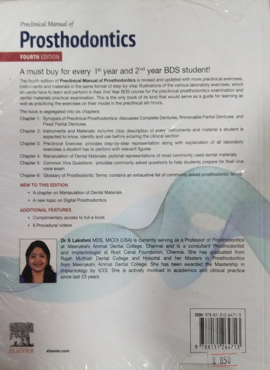 Preclinical Manual of Prosthodontics, by S Lakshmi 4th edition
