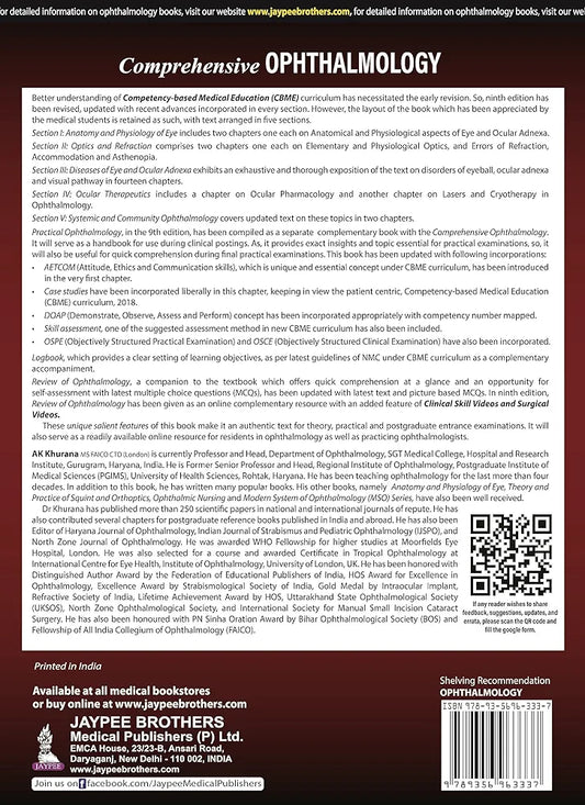 Comprehensive Ophthalmology With Ophthalmology Logbook Plus Practical Ophthalmology By A K Khurana 9th edition
