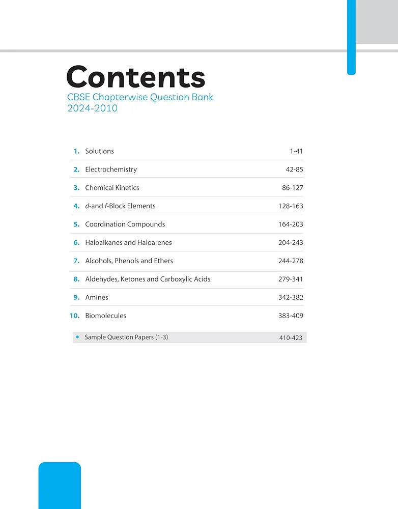 - Revised edition of CBSE Chapterwise Solved Papers for Chemistry class 12th