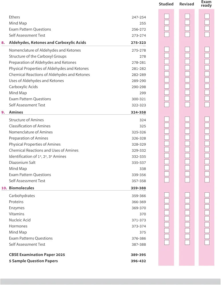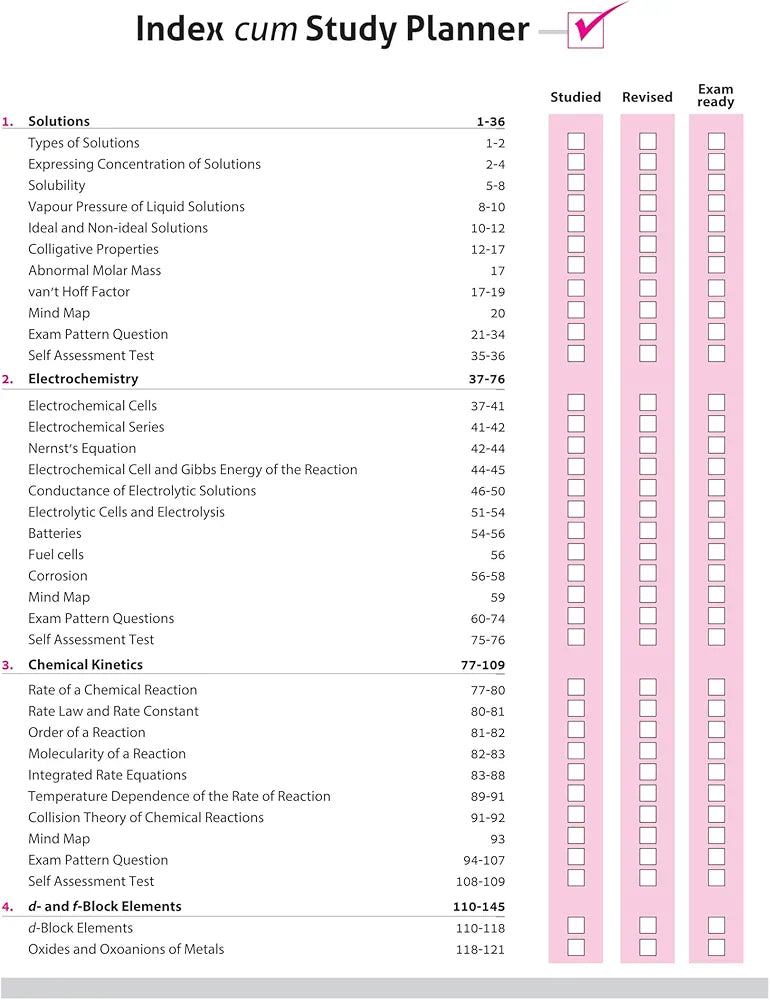 Solutions, Electrochemistry, Chemical Kinetics, d-and f-Block Elements, Coordination Compounds, Haloalkanes and Haloarenes, Alcohols, Phenols and Ethers, Aldehydes, Ketones and Carboxylic Acids, Amines, Biomolecules, Sample Question Papers (1-5), CBSE Examination Paper 2025