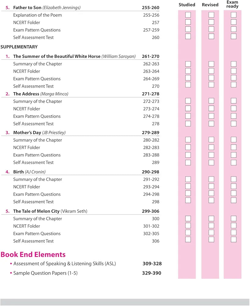 Reading Skills, Creative Writing Skills & Grammar, Grammar, Literature Textbooks, Book End Elements (Assessment of Speaking & Listening Skills, Sample Question Papers)