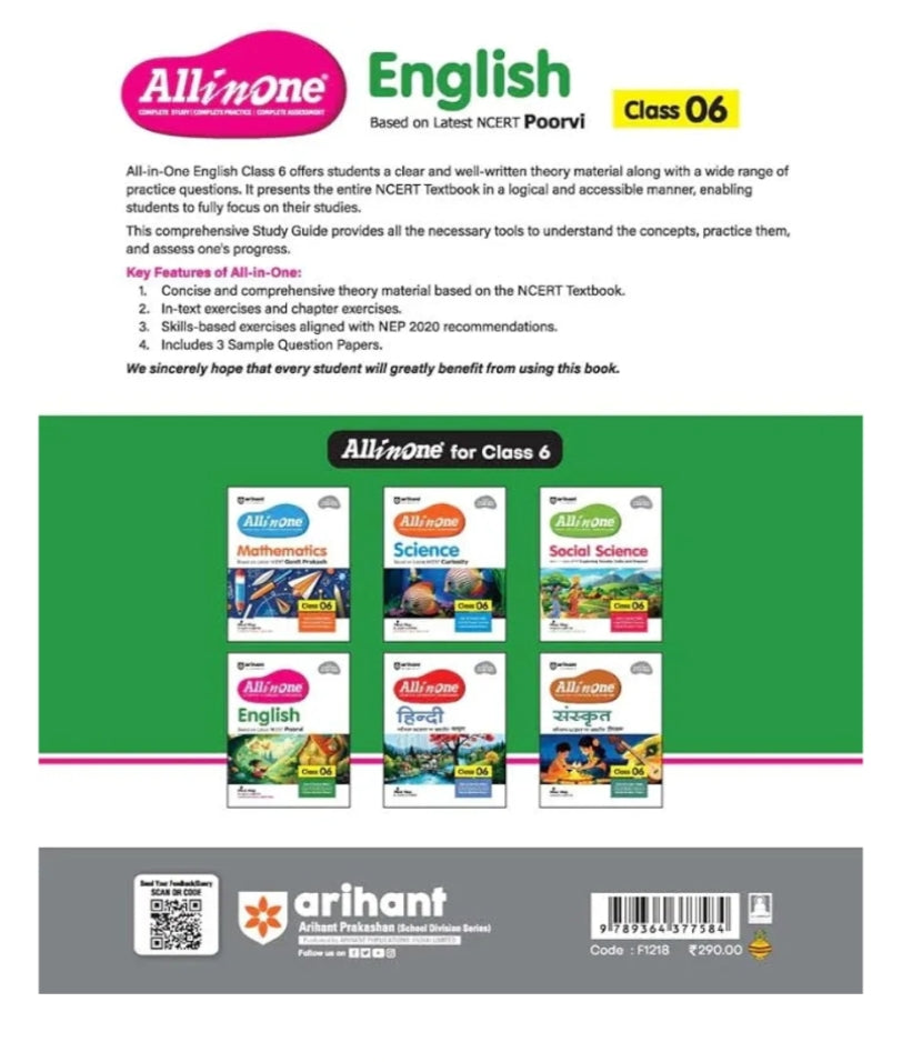 Equip your Class 6 student with all they need to master English with Arihant’s "All in One." This book is not just a study guide—it’s a complete toolkit for academic success in English.