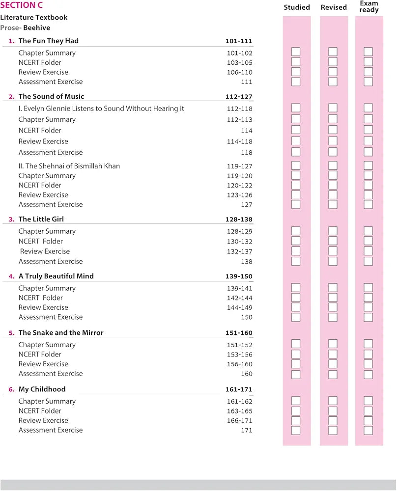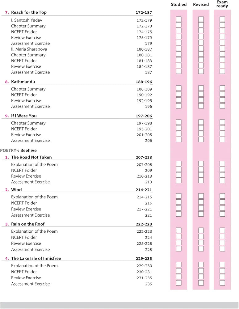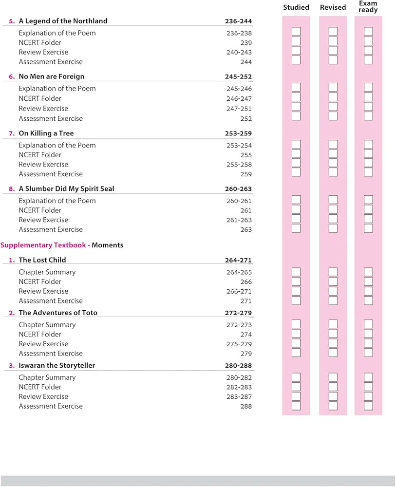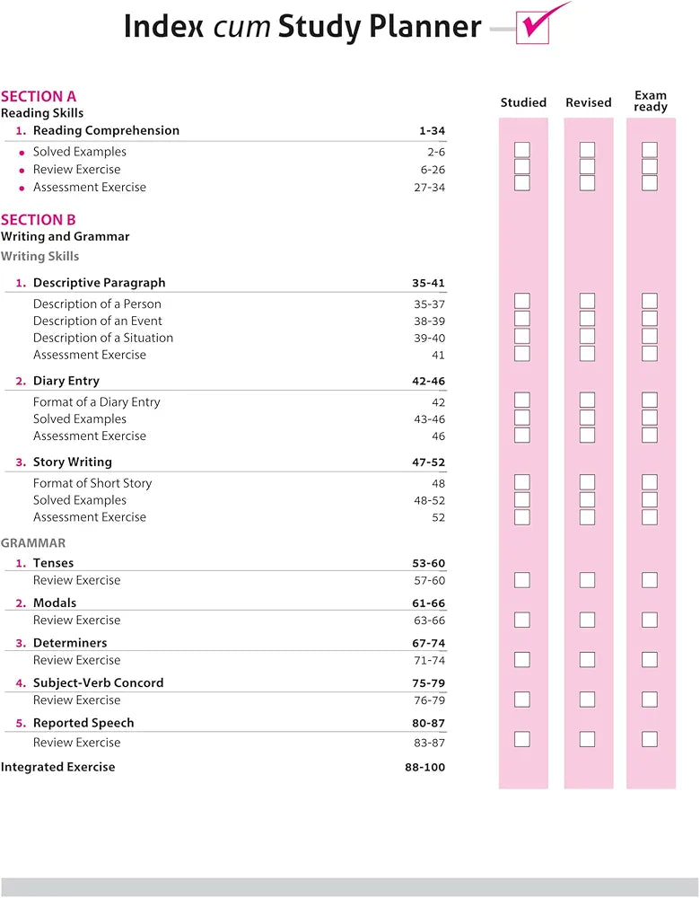 Section A: Reading Skills, Section B: Writing and Grammar, Section C: Literature Textbook, Supplementary Textbook- Moments, Assessment of Speaking & Listening Skills (ASL), Sample Question Papers (1-5)
