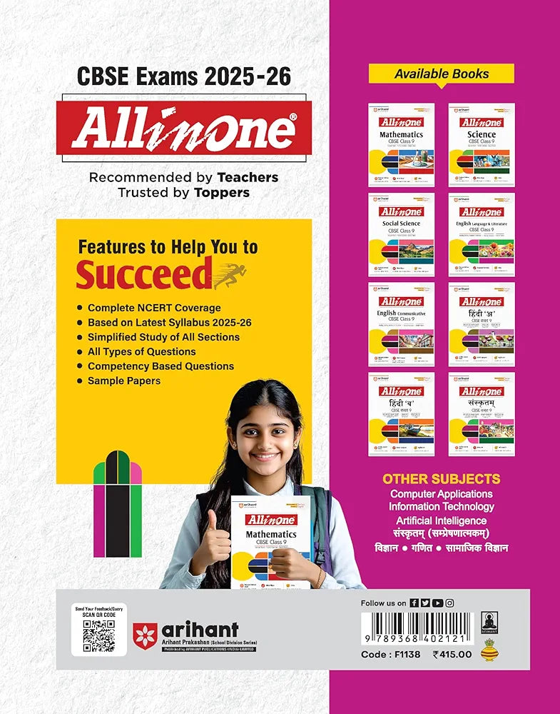 Arihant's All-in-One series has been the #1 choice of students and teachers for over a decade. Known for its well-structured content, exam-oriented approach, and easy-to-understand language, this series ensures complete concept clarity and thorough practice. Each book is meticulously crafted to align with the latest CBSE syllabus and exam pattern, making it a trusted companion for students aiming for academic excellence.
