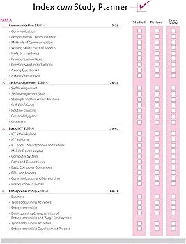 Communication Skills, Self Management Skills-I, Basic ICT Skills-I, Entrepreneurship Skills-I, Green Skills-I, Introduction to I-ITes Industry, Data Entry and Keyboarding Skills, Digital Documentation, Electronic Spreadsheet, Digital Presentation, Sample Question Papers (1-3)