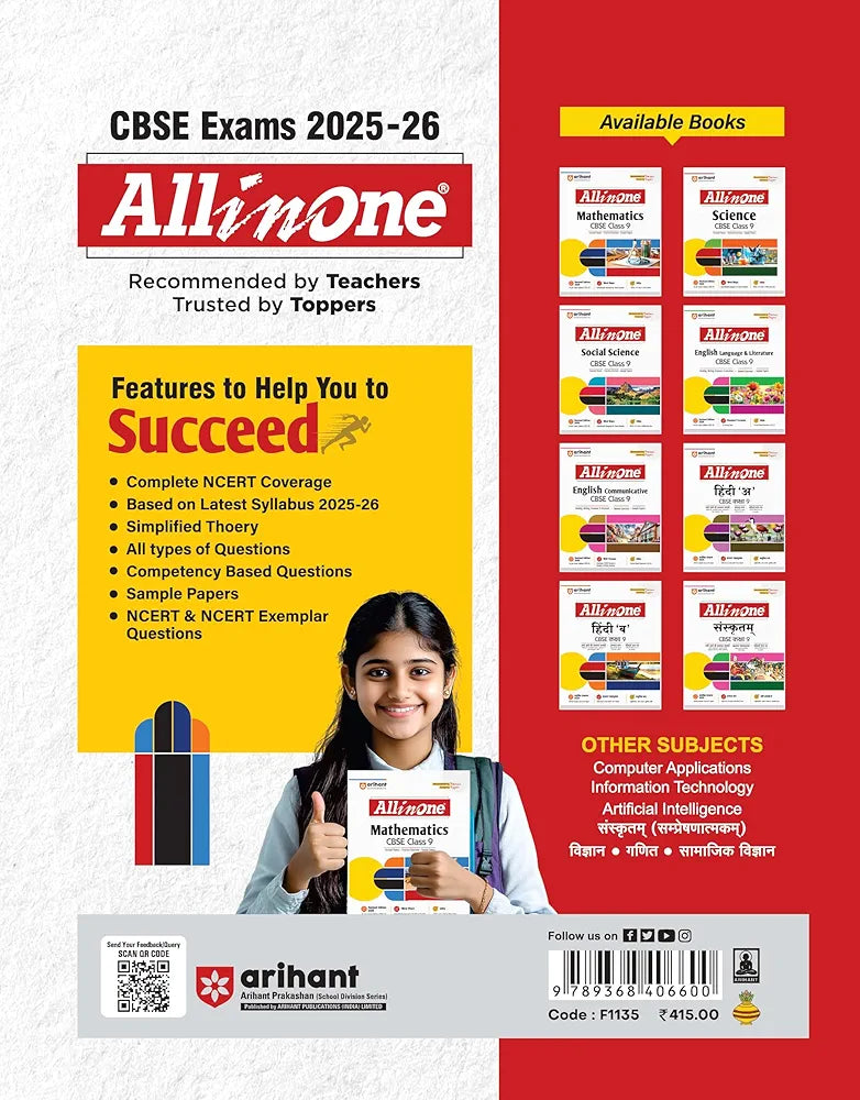 Arihant's All-in-One series has been the #1 choice of students and teachers for over a decade. Known for its well-structured content, exam-oriented approach, and easy-to-understand language, this series ensures complete concept clarity and thorough practice. Each book is meticulously crafted to align with the latest CBSE syllabus and exam pattern, making it a trusted companion for students aiming for academic excellence.