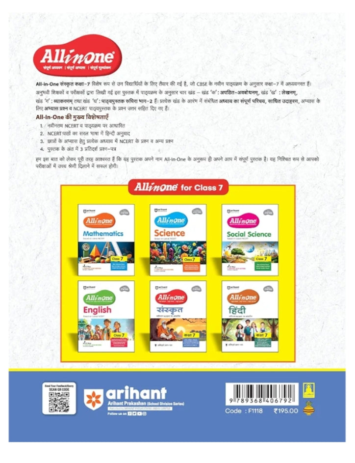 Equip your Class 7 student with all they need to master Sanskrit with Arihant’s "All in One." This book is not just a study guide—it’s a complete toolkit for academic success in Sanskrit.
