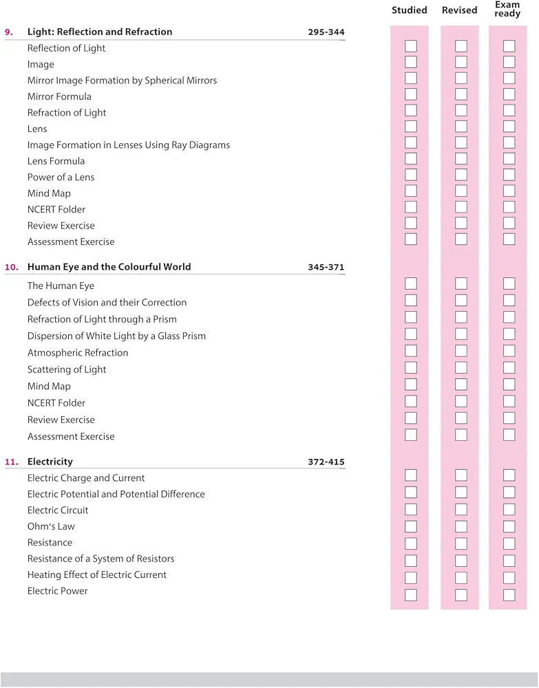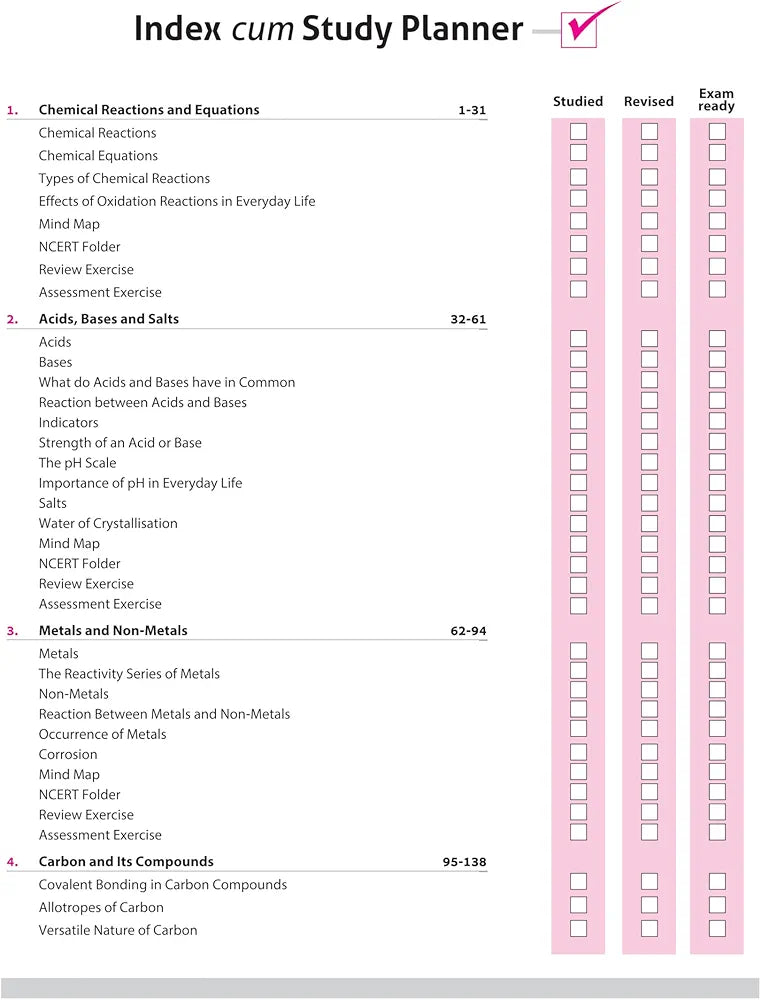 Chemical Reactions and Equations, Acids, Bases, and Salts, Metals and Non-Metals, Carbon and Its Compounds, Life Processes, Control and Coordination, How Do Organisms Reproduce, Heredity, Light: Reflection and Refraction, Human Eye and the Colorful World, Electricity, Magnetic Effects of Electric Current, Our Environment, Experiments, CBSE Examination Papers 2025, Sample Question Papers (1-3)