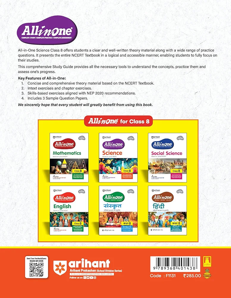 Equip your Class 8 student with all they need to master Science with Arihant’s "All in One." This book is not just a study guide—it’s a complete toolkit for academic success in Science.