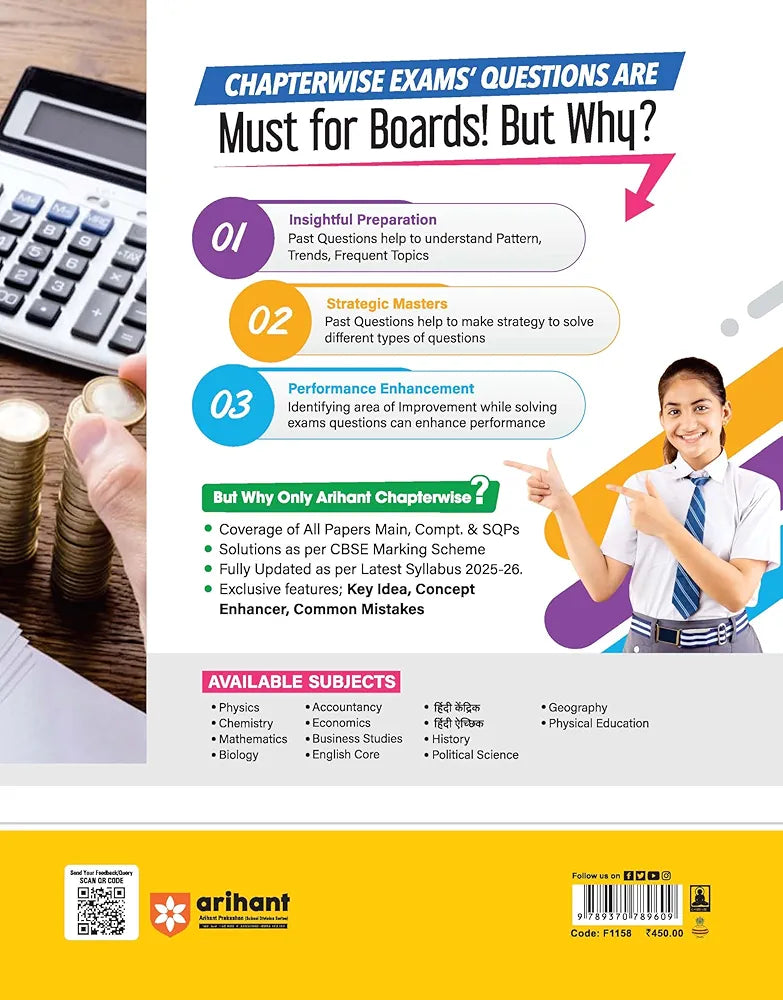 Arihant CBSE Chapterwise Question Bank 2025–2016 for Class 12 Accountancy | Latest Syllabus | Includes Solved Papers, Sample Papers, and CBSE Marking Scheme