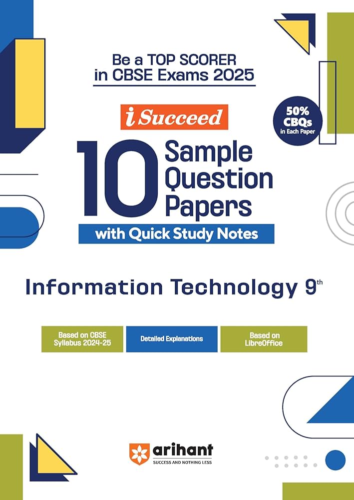 Arihant i Succeed 10 Sample Question Papers for Information Technology Class 9th | As per latest CBSE Sample Paper issued on 5 Sept. 2024|50% CBQs in each paper | Detailed Answers | Fully Solved Latest CBSE Sample Paper For Exam 2025
