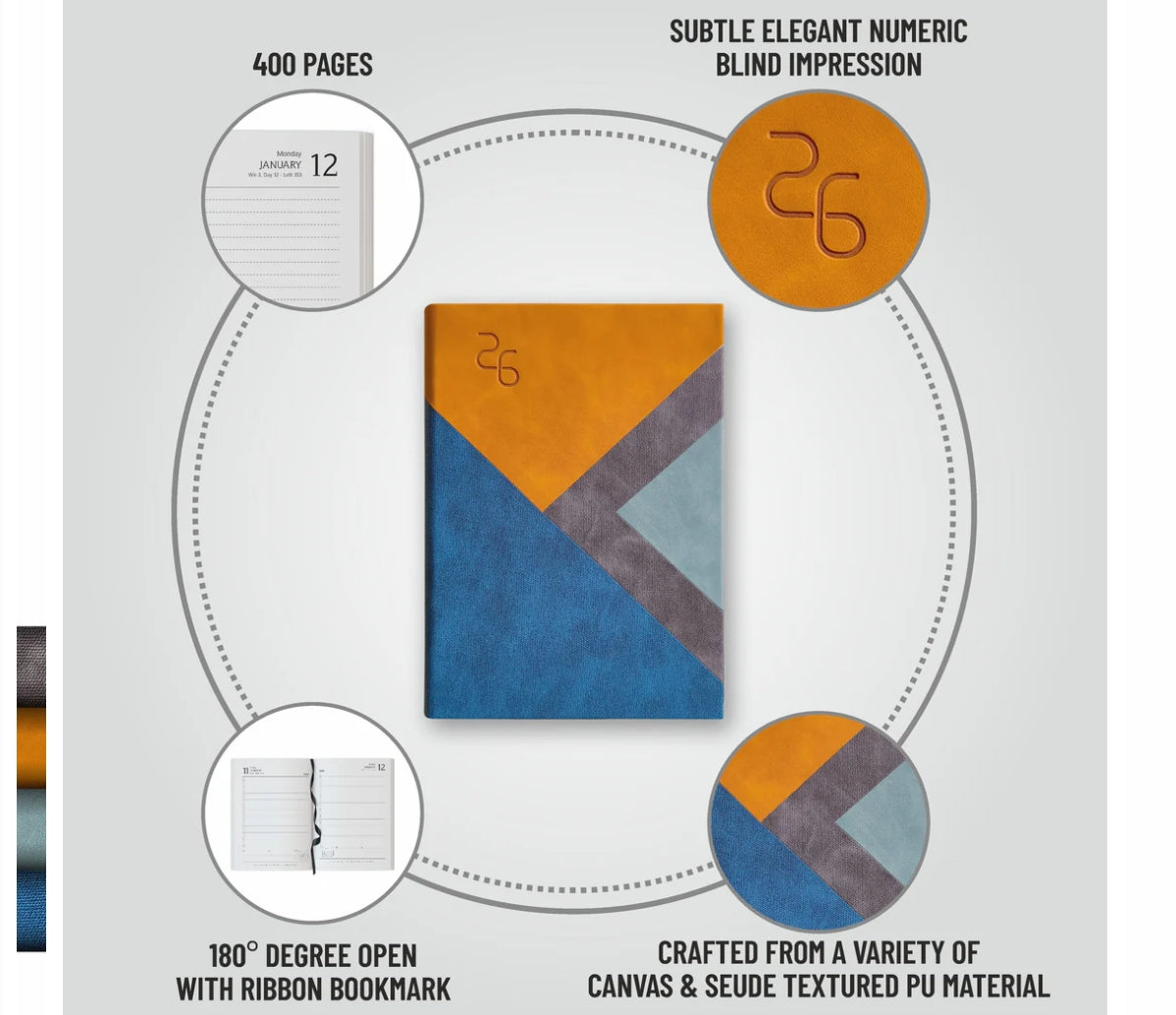 B5 Anupam Fuzen 2026 Diary with Dates | Daily Planner with Monthly Calendar | One Page Per Day from January to December | Canvas Textured & Suedue PU Material | New Year Diary for Office, Home, Personal Use