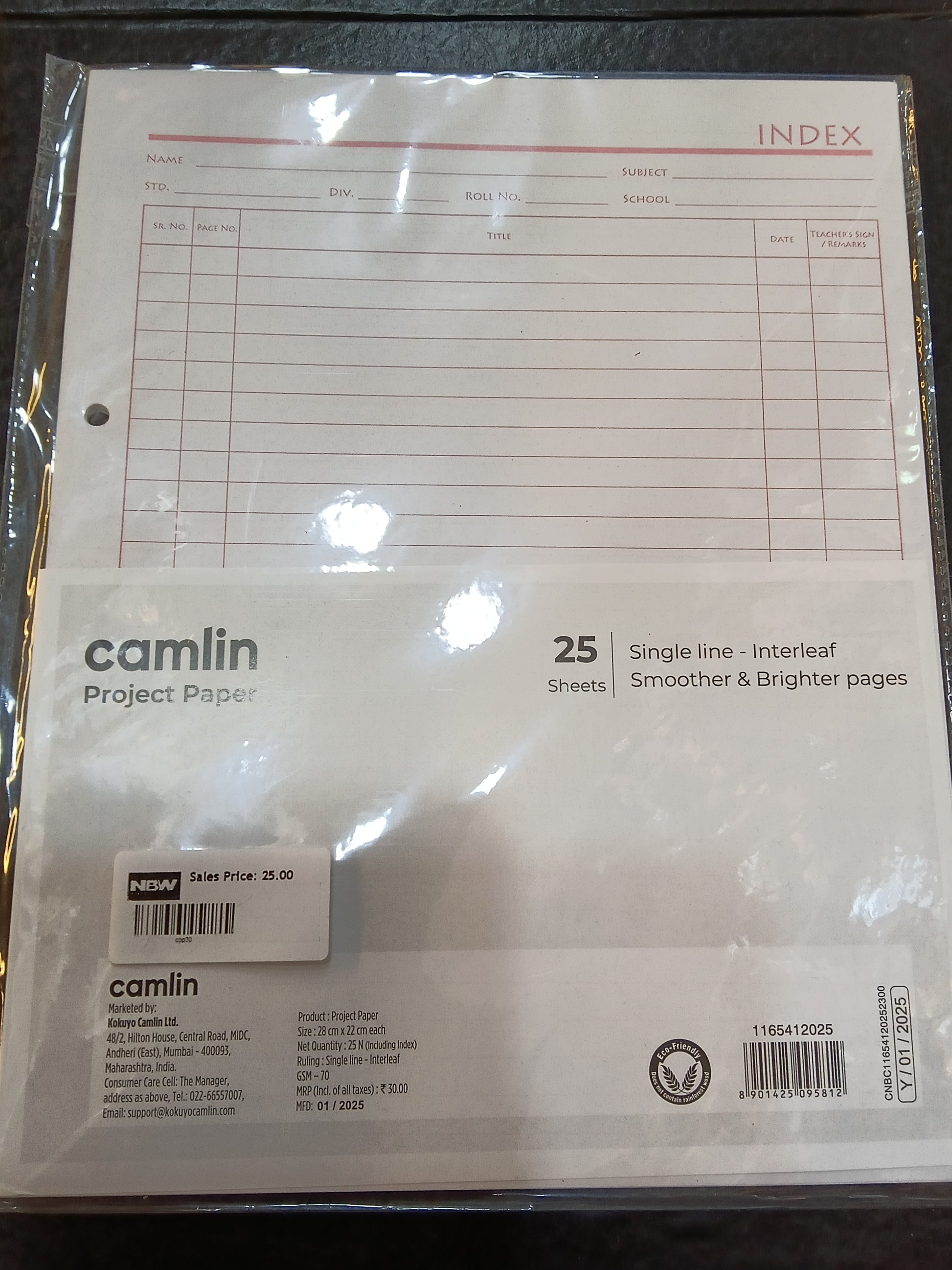 Camlin project paper 25 sheets siize28cmx22cm eash Ruling single line