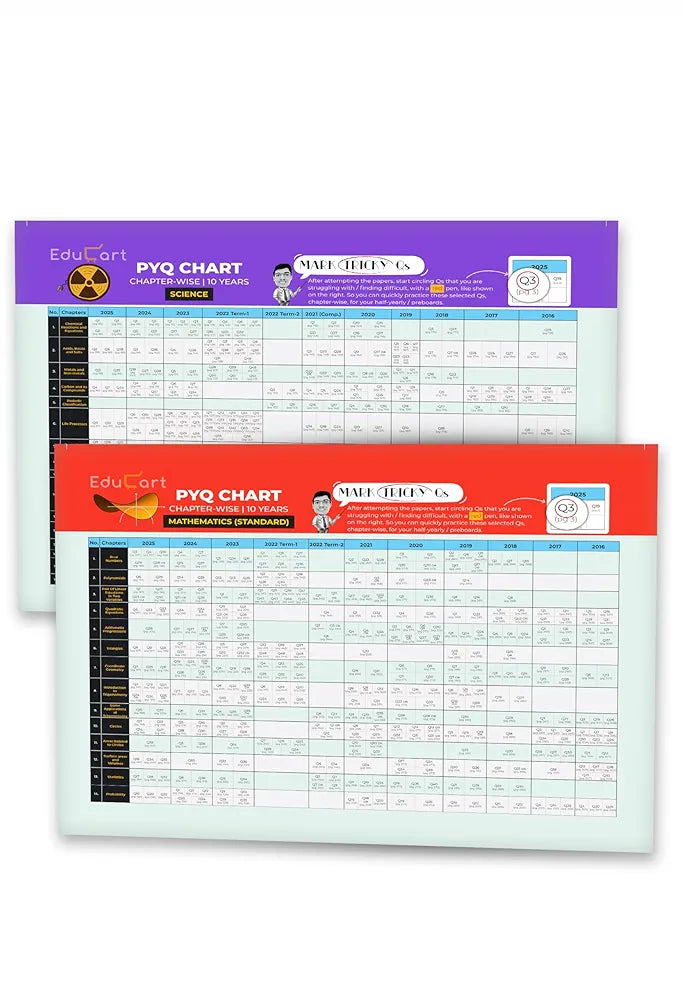 Educart Granth CBSE Class 10 Previous 10 Year Solved Papers 2026 - with PYQ Charts (Mathematics Standard & Basic, Social Science, Science, Hindi A & B, English, Computer Applications, IT and Sanskrit) for 2025-26 Boards