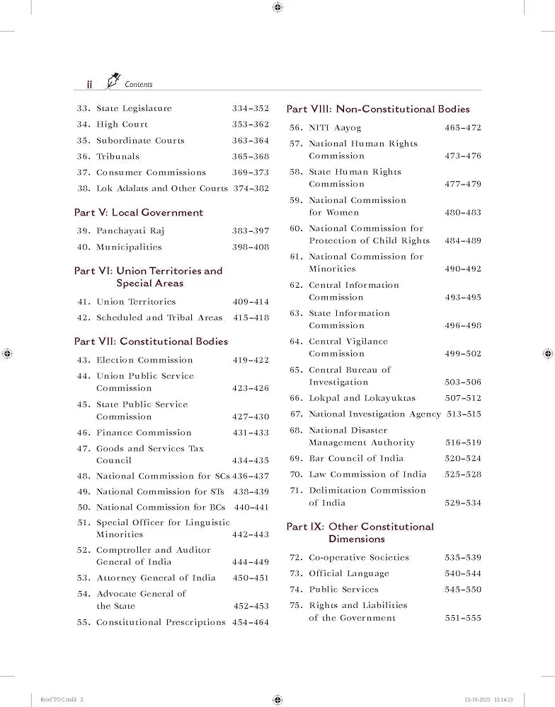 2. 12 new chapters including Law Commission, Bar Council, Delimitation Commission, World Constitutions, National Commission for Women, for Child rights, for the minorities, Landmark Judgements etc.