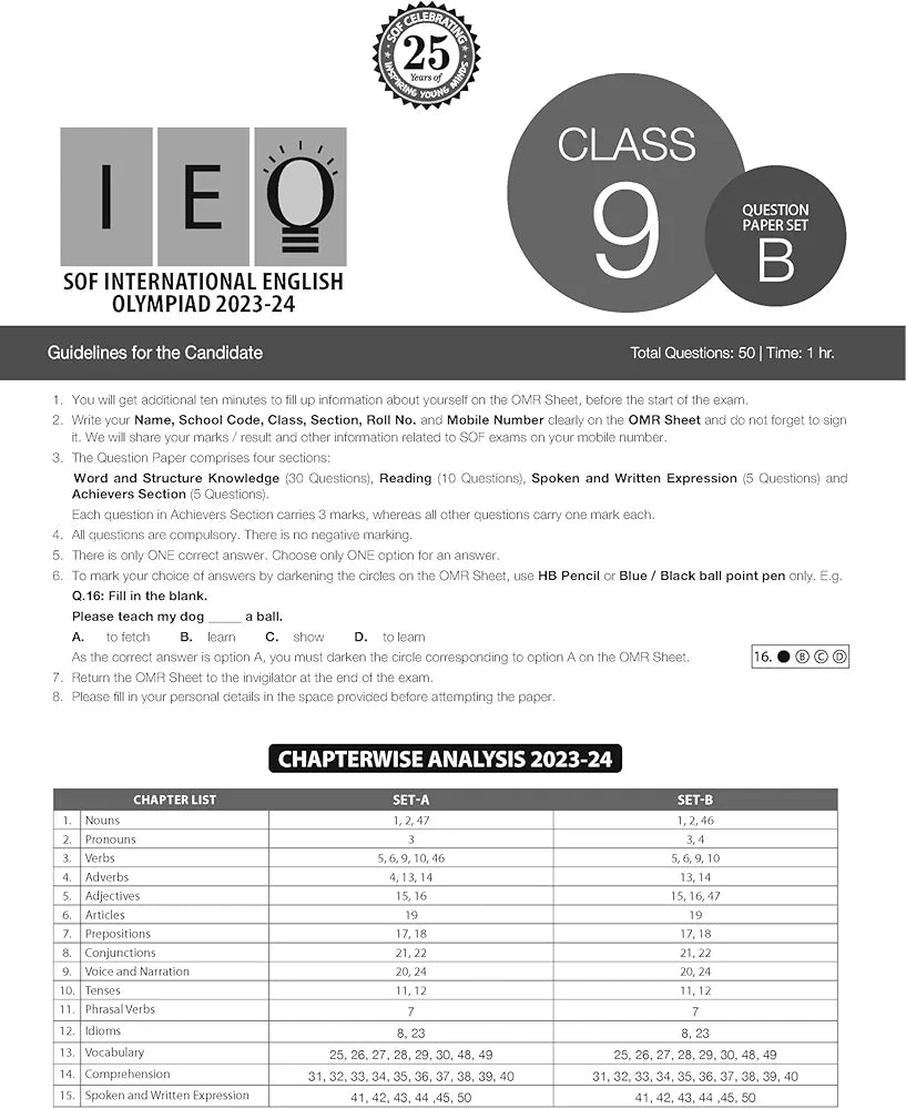 MTG IEO Class-9 Olympiad 10 Previous Years Papers (2023-2019 Set A & B) English with Mock Test Papers - Sample OMR Sheet with Chapterwise Analysis | SOF Olympiad Books For 2024-25 Exam