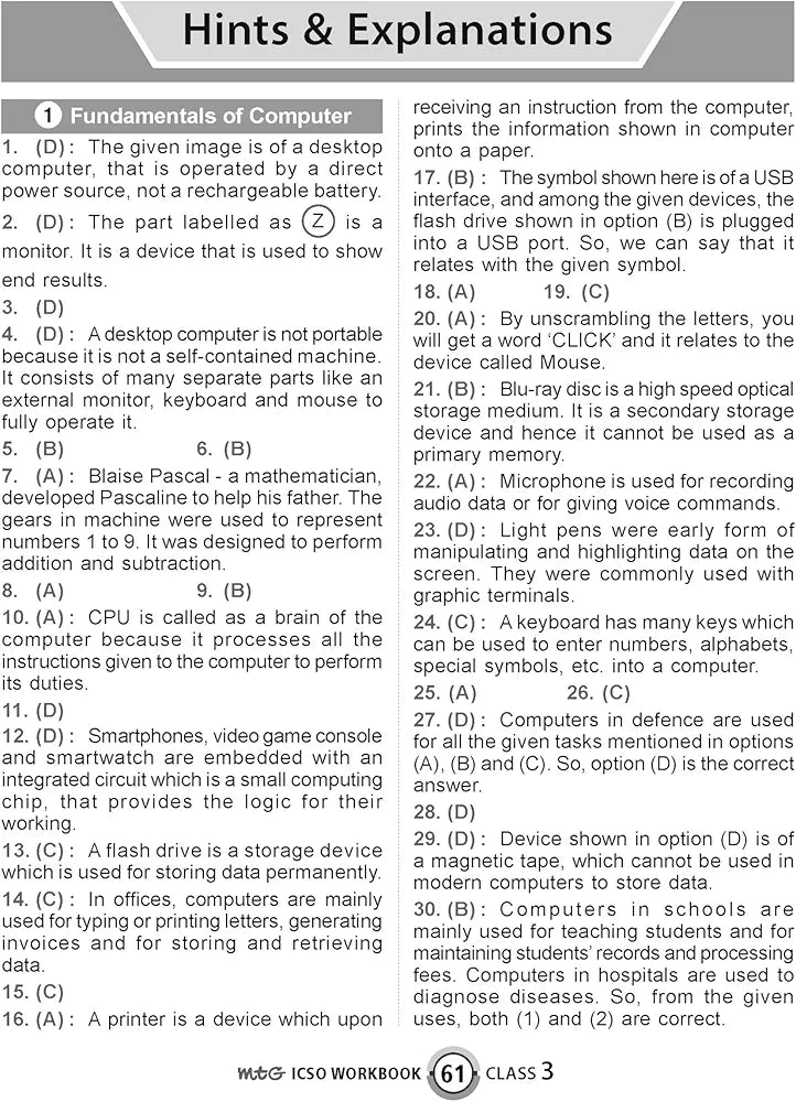 MTG International Computer Science Olympiad (ICSO) Workbook for Class 3 - Quick Recap, MCQs, Previous Years Solved Paper and Achievers Section - SOF ICSO Olympiad Preparation Books For 2024-2025 Exam