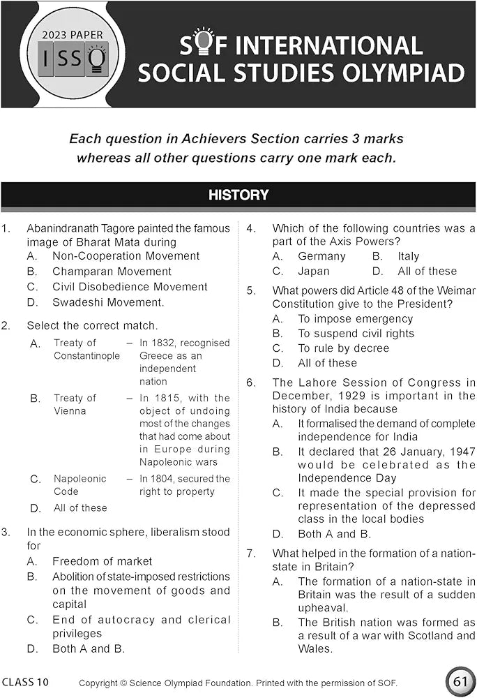 MTG’s ISSO workbook is the perfect tool to help students prepare for their upcoming SOF ISSO 2024-25 exam. Packed with an interactive question bank, this workbook is designed to keep students engaged and motivated throughout their learning process. With a focus on developing important Social Science knowledge needed for success, this workbook is a must-have for any student looking to excel in their Olympiad exams.