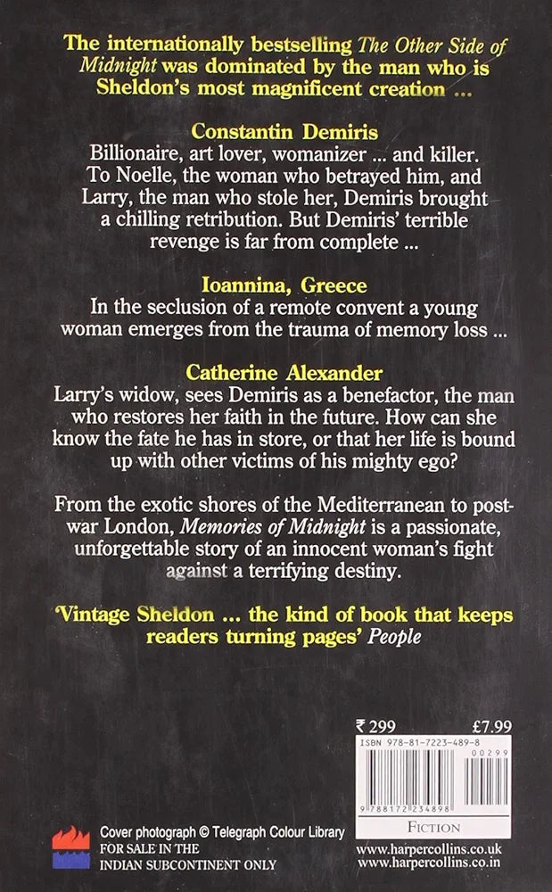 MEMORIES OF MIDNIGHT - The internationally best-selling 'The Other Side of Midnight' was dominated by the man who is Sheldon's most magnificent creation…'Constantin Demiris'Billionaire, art lover, womaniser…and killer. To Noelle, the woman who betrayed him, and Larry, the man who stole her, Demiris brought a chilling retribution. But Demiris’ terrible revenge is far from complete…'Ioannina, Greece'In the seclusion of a remote convent a young woman emerges from the trauma of memory loss…'Catherine Alexander'Larry’s widow, sees Demiris as a benefactor, the man who restores her faith in the future. How can she know the fate he has in store, or that her life is bound up with other victims of his mighty ego?From the exotic shores of the Mediterranean to post-war London, 'Memories of Midnight' is a passionate, unforgettable story of an innocent woman’s fight against a terrifying destinyIn this deadly game, there can only be one winner…If Judd is to survive he must play the game to win.This is Sidney Sheldon's first novel – a gripping, intense thriller that brought him fame as a bestselling novelist.